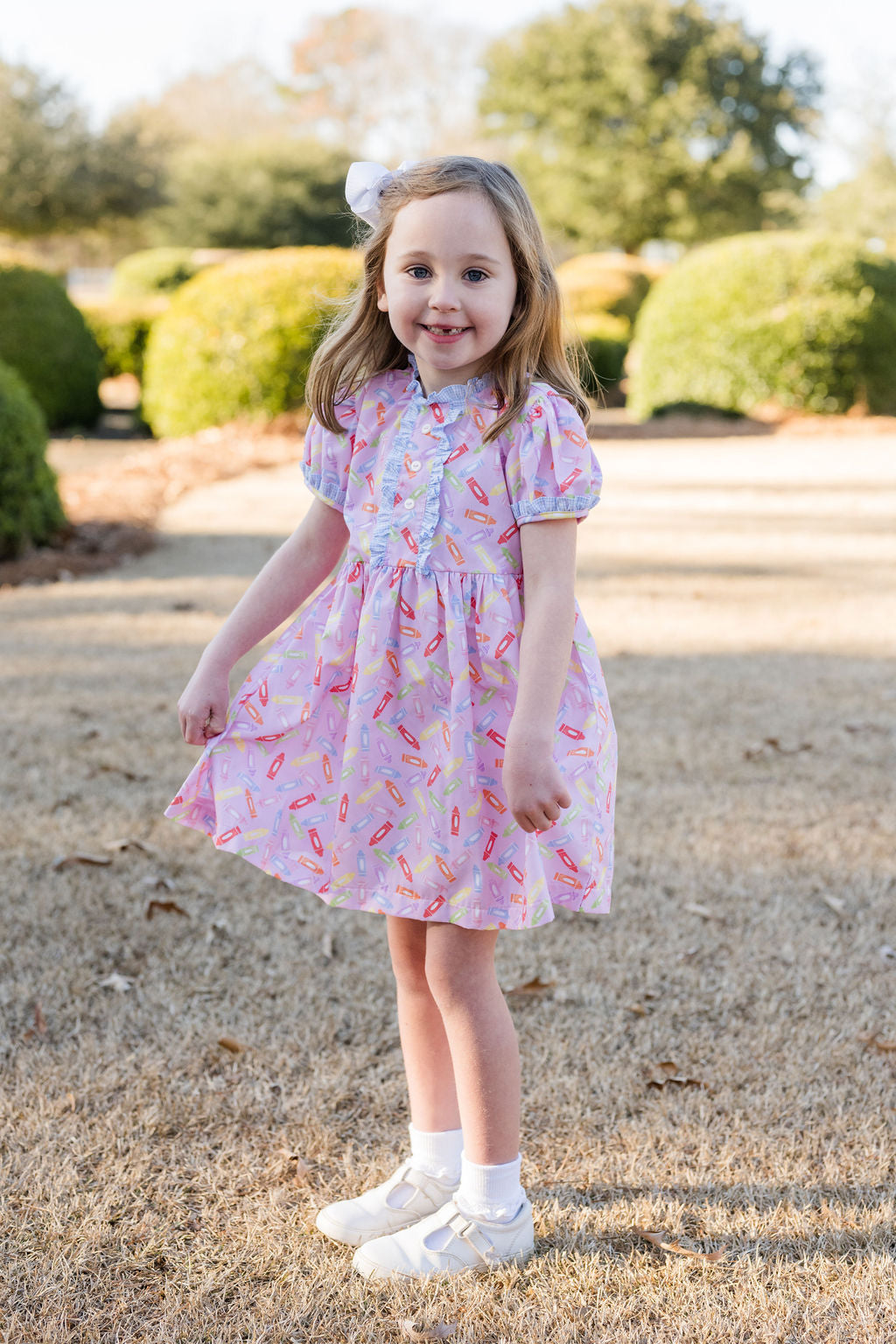 Annie Dress, Back to School - Pink Crayon
