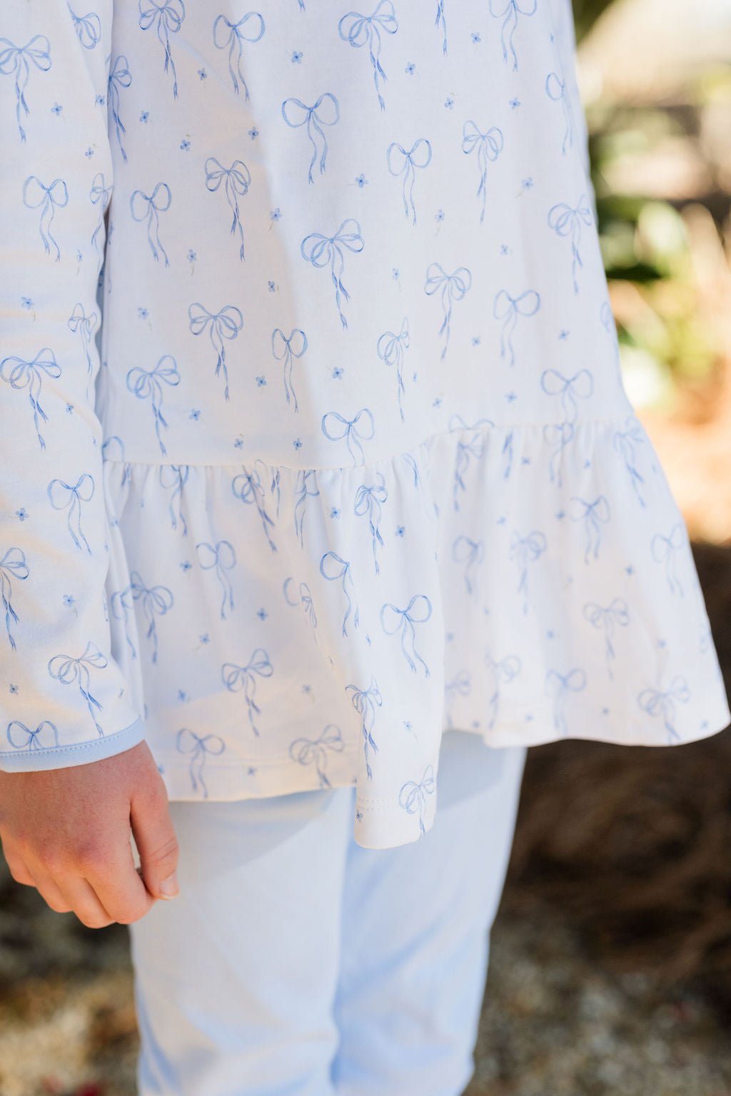 Peggie Peplum Legging Set, Blue Bows Knit